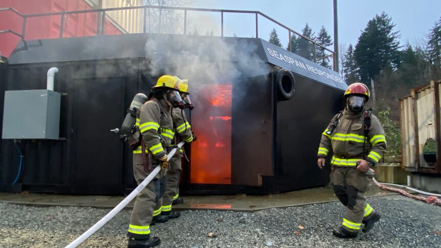 Seaspan’s $800K mock tugboat fire simulator trains crews to fight flames in dangerous conditions Donning respirators and heavy, protective jackets and pants, crews are preparing